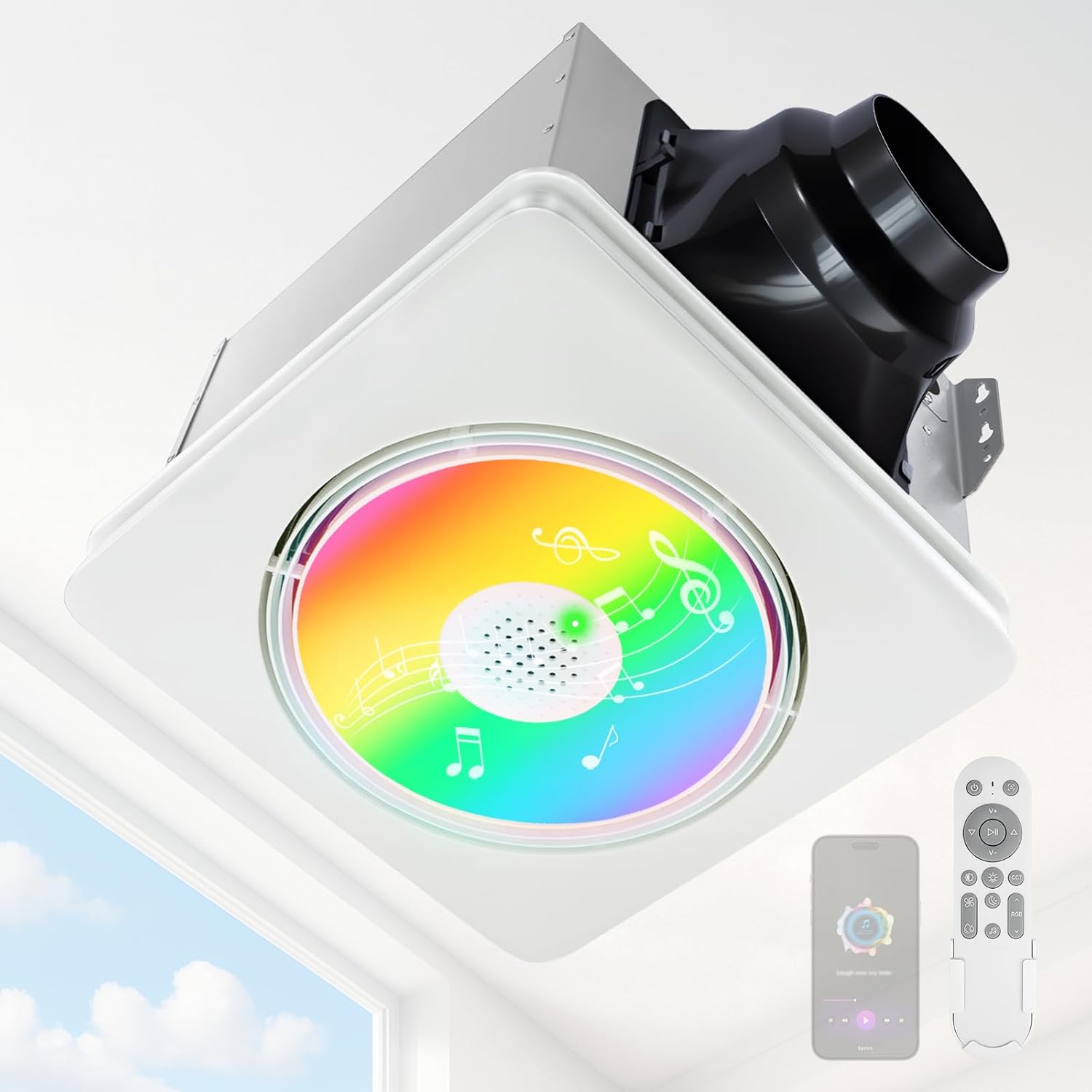 GROWNEER Bathroom Exhaust Fan with Light and Bluetooth Speaker, 110160 CFM 1.0 Sone Exhaust Fan with Humidity Sensor Auto-on at 60%, Powerful Oversize, 9 RGB Modes, 1500lm 3CCT & Nightlight